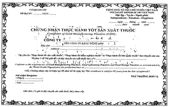 Giấy chứng nhận đủ điều kiện sản xuất/buôn bán/nhập khẩu thuốc thú y